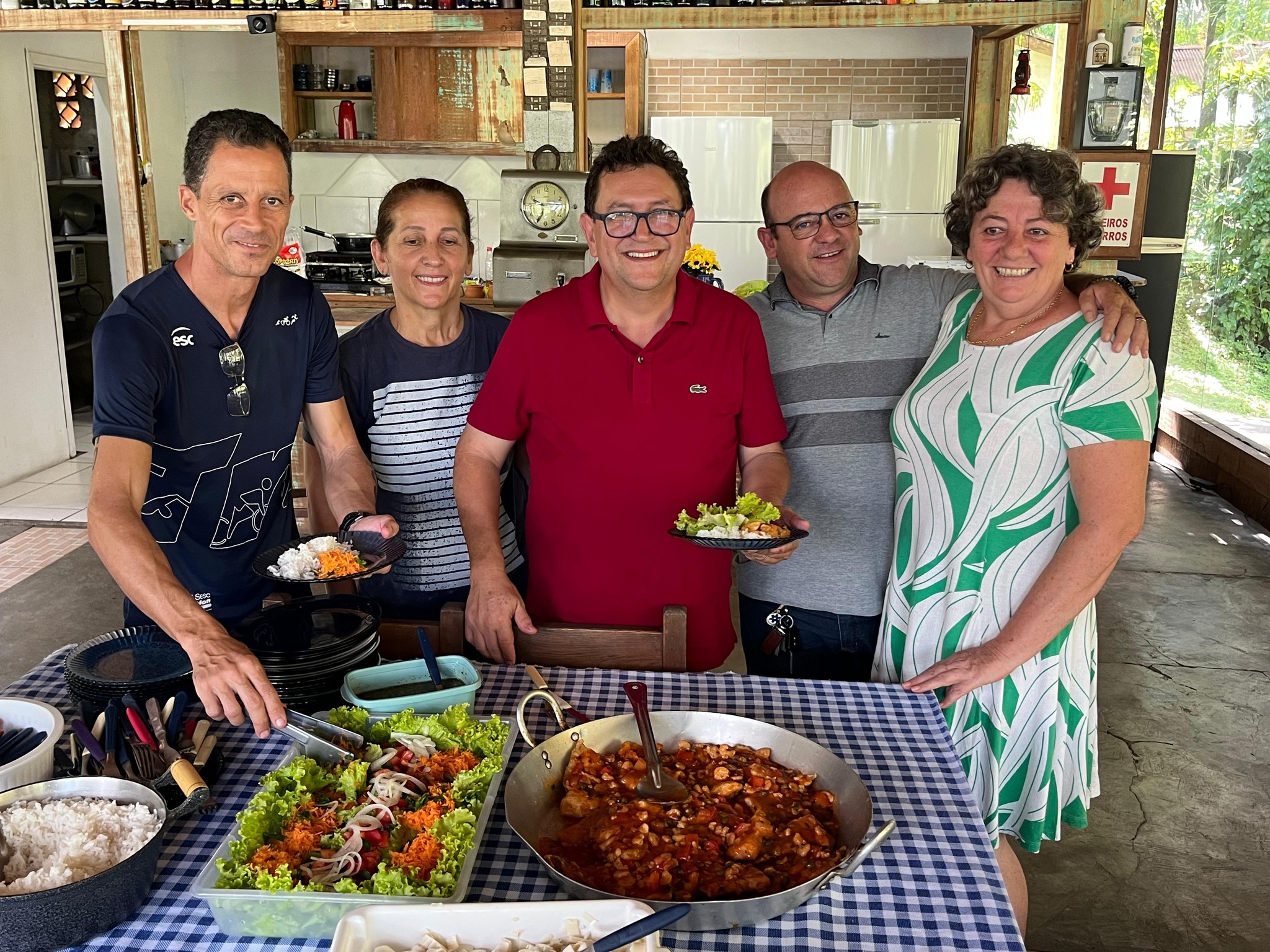 O almoço, realizado na Chácara Casa de Vidro, foi outro destaque da visita, trazendo o sabor da culinária local com um prato de filé de tilápia ao molho de camarão acompanhado de salada de palmito.