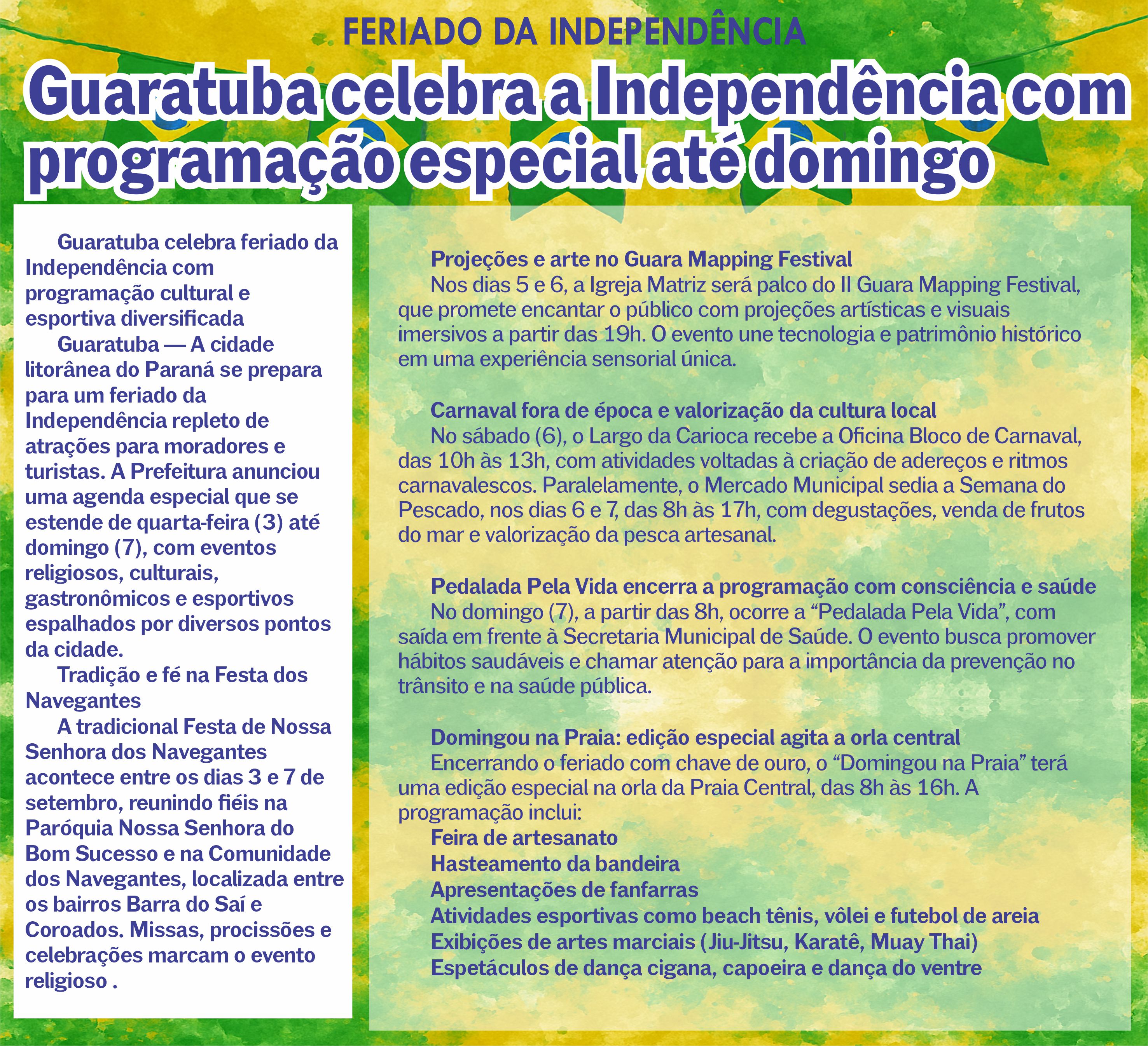 O Corpo de Bombeiros Militar do Paraná (CBMPR) realizou 1.051 atendimentos preventivos entre os dias 6 e 8 de setembro, durante o primeiro fim de semana da pré-operação Verão Maior Paraná 2025/2026. Guaratuba, um dos principais destinos turísticos do litoral, já conta com equipes de guarda-vidas atuando aos finais de semana, em preparação para a alta temporada.